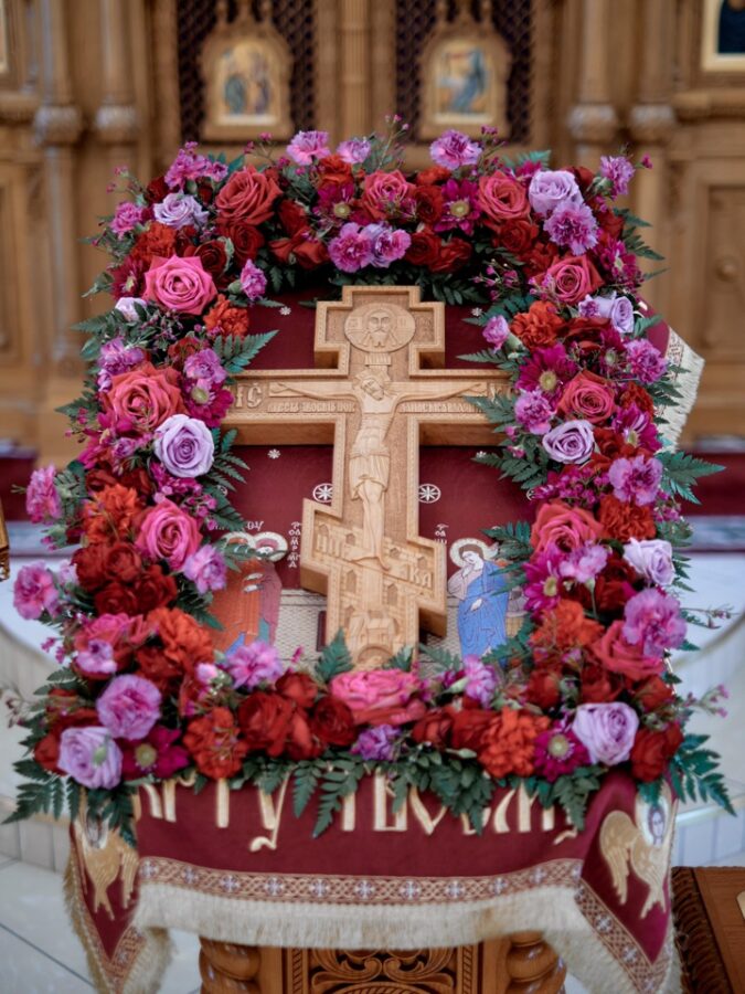 Вознесыйся на крест волею, тезоименитому Твоему новому жительству щедроты Твоя даруй, Христе Боже; возвесели силою Твоею, победы дая нам на сопостаты, пособие имуще Твое, оружие мира, непобедимую победу.